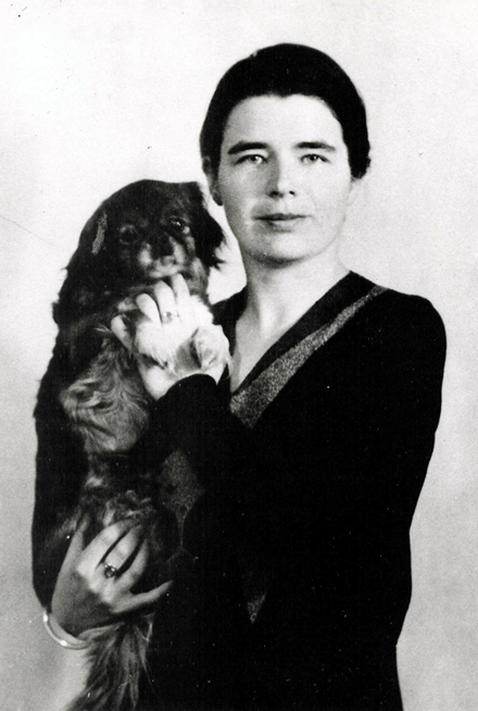 Marguerite Yourcenar in her mid-twenties with her Pekinese. For her dog she wrote the essay “Suite d’estampes pour Kou-Kou-Haï” in 1927