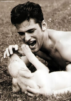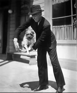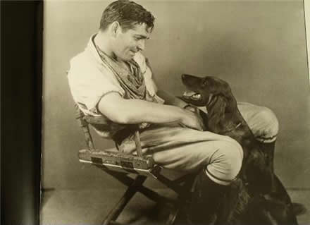 Clark Gable and his dog Lord having a conversation