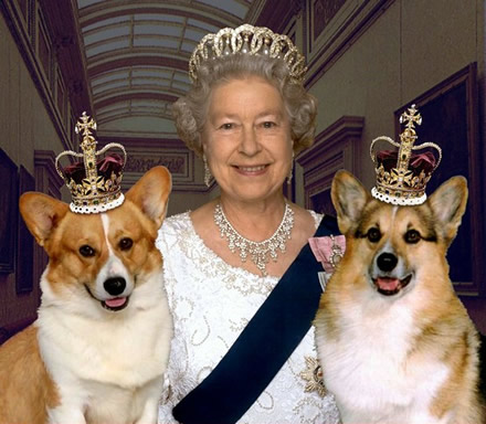 HM Queen Elizabeth II and her Corgies