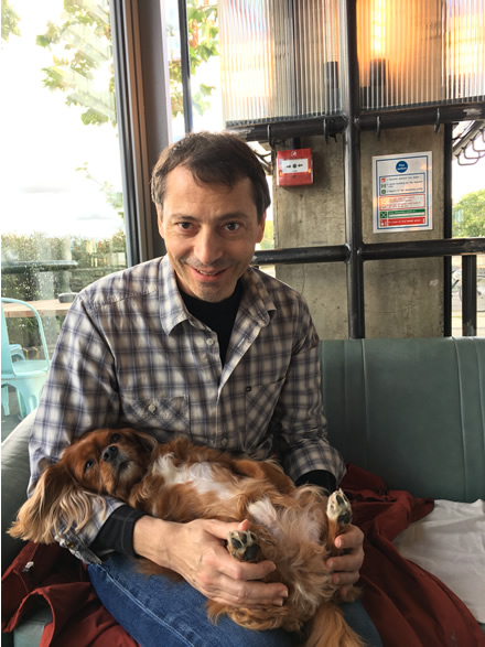 This urn is now in the library, next to the beautiful photo of the 3 of us with Atsuko, a Japanese friend, in our Yokohama flat, in the Spring 2018, and the portrait of Argos by our neighbour Kiyomi. In this improvised altar honoured by the constant light of a burning candle, a digital screen projects slowly hundreds of photos documenting unforgettable moments during the life of Argos...