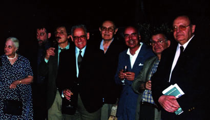 [Foto tomada en Can Mossenya, Mallorca, 24 de agosto de 2001, en la inaguración del Encuentro internacional de Amigos de Borges: Alicia Jurado, Alejando Vaccaro, Roberto Alifano, Eduardo García de Enterría, Horacio Armani, Miguel-Ángel Meizoso, Salvador Samaritano, Pedro Barcia]