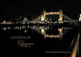 New Year photo of Tower Bridge, from City Hall South bank of the river Thames (home to the Friends of Borges) and Artwork by N A D Truillet
