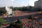 La gente está actuando. El lunes, 60 personas fueron arrestadas en Washington, D.C., cuando participaban de actividades de la campaña No War, No Warming (No a la guerra, no al calentamiento), que vincula en su reclamo a la guerra de Irak, con la reconstrucción posterior al Katrina y el cambio climático, y exige que el Congreso actúe, sometiendo a los funcionarios electos a una prueba de fuego. Los seres humanos estamos provocando el calentamiento global. Aún – por poco tiempo – tenemos la oportunidad de limitar el daño. Pero el tiempo se acaba. Step it up, vayamos más allá. ...más en Democracy Now